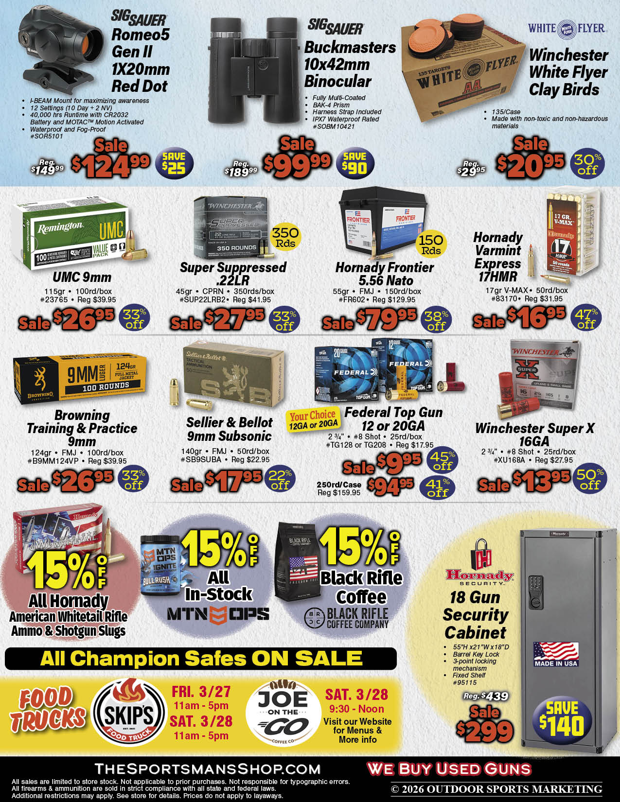 Sales prices valid March 27-29 ONLY! Offers valid on in-stock items only. Sales prices valid in-store only. Sales prices not valid on special orders or layaways. No rainchecks. No holds.