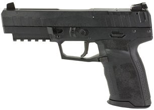The FN 509 Tactical, an extension of the FN 509 family, is based on FN’s submission pistol that the U.S. Army tested for its Modular Handgun Trials, but includes the significant improvements to the design that were implemented in the FN 509. The pistol features a patent-pending Low-Profile Optics Mounting System that enables the platform to accept miniature red dot (MRD) optics that co-witness with the suppressor-height night sights. The slide cap has raised sight wings that protect iron sight alignment if the pistol is dropped or jostled, and provides a textured ramp for racking the slide against a belt loop, pant pocket or boot. An FN-signature 4.5-inch, cold hammer-forged, stainless-steel barrel with target crown, 1/2″ x 28 threads that accept the bulk of 9mm suppressors available and thread cap with integrated O-ring to prevent loosening during use complete the top end. The 509 Tactical ships with two interchangeable backstraps and FN logo soft pistol case. This model has a black finish and comes with one 17-round magazine and one 24-round magazines.