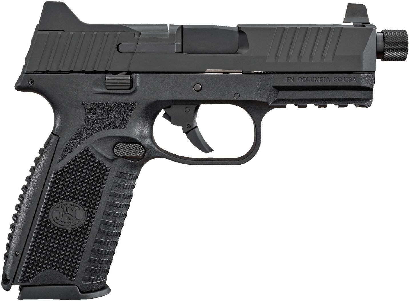 FN America 509T 9mm 17+1/24+1, 4.5″ Black Steel Threaded Barrel, Matte Black Optic Ready/Serrated Stainless Steel Slide, Matte Black Polymer Frame w/Picatinny Rail