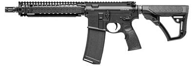 Use what THEY use. The Daniel Defense MK18 features the railed forend Daniel Defense currently provides to USSOCOM and a 10.3″ Cold Hammer Forged Barrel. The MK18 rail system features the Bolt-Up System has been rigorously tested prior to fielding by USSOCOM (currently over 15,000 units). The 10.3″ barrel is the same length in use for the MK18 upper most commonly used for CQB operations. The MK18 Factory SBR by Daniel Defense is unmatched in size, weight, and performance. This rifle also comes with the newly designed, rugged and comfortable Daniel Defense Buttstock and Pistol Grip.