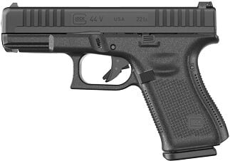 GLOCK 44V Striker Fired Polymer Frame Compact 22LR 4.02″ Barrel, Matte Black Finish, No Finger Grooves, Adjustable Sights, 10 Rounds, 2 Magazines