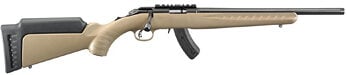 Ruger American Rimfire Bolt-Action 22 WMR 16″ Barrel, Threaded 1/2X28, Satin Blued Finish, Flat Dark Earth Synthetic Stock, Scope Base, 15 Round Magazine
