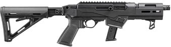 Ruger PC Carbine Short Barreled Rifle 9MM 6.5″ Cold Hammer-Forged Barrel, Threaded 1/2X28, Anodized Black Finish, Aluminum Free-Float M-LOK Handguard with a Removable M-LOK Hand Stop, Pistol Grip, Black Magpul Stock Adjustable for Length-of-Pull, 17 Round Magazine, OAL 26″, Glass-Filled Polymer Chassis System, Light, Crisp Trigger Pull