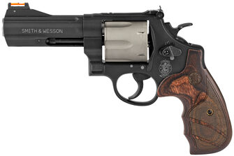 Smith & Wesson Model 329PD 44 Magnum 4.13″ Barrel, Scandium, Titanium Alloy Cylinder, Matte Black Finish, Textured Laminate/Synthetic Grips, Adjustable Rear Sight, Hi-Viz Front Sight, 6 Rounds