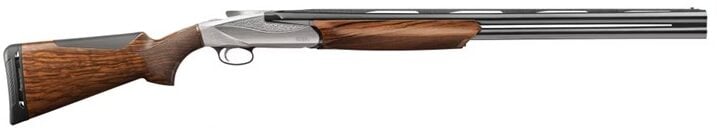 Benelli 828U 12 Gauge 28″ Barrels, 3″ Chambers, Engraved Nickel-Plated Receiver, Gloss Blue Crio Treated Barrels, AA-Grade Satin Walnut Stock, Red Fiber Optic Front Sight, Custom Fitted Hard Case, Includes 5 Crio Treated Chokes – C, IC, M, IM & F