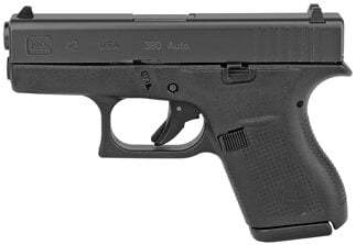 GLOCK 42 Sub-Compact 380 ACP 3.25″ Barrel, Matte Black Finish, No Finger Grooves, Fixed Sights, 6 Rounds, 2 Magazines