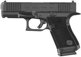GLOCK 19 Gen 6 Striker Fired Compact 9MM 4.02″ Barrel, DLC Finish, Fixed Sights, Optics Ready System, RTF6 Grip Texture, Enlarged Beavertail, Textured and Extended Thumb Rest, Flat Faced Trigger, Undercut Trigger Guard, Interchangeable Backstraps, 15 Rounds, 3 Magazines