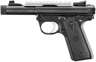 Ruger Mark IV 22/45 22LR 4.4″ 1/2x28Threaded Barrel, Matte Black Finish, Checkered Grips, Adjustable Rear Sight, Factory Picatinny Rail, Ambidextrous Manual Safety, Includes Two, 10-Round Magazines