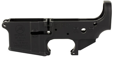 Aero Precision M16A4 Clone Lower 223/5.56, Black Anodized Finish, Custom Aero Precision logo, Markings include: Property of U.S.A., MOD M16A4, CAL. 5.56MM, Serial number designation, Safe/Semi/Burst safety selector markings