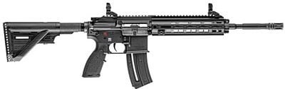 Heckler & Koch HK416 Semi-Automatic 22LR 16.1″ Threaded Barrel, 1/2X28 Threads, Black, Synthetic Stock, M-LOK RIS Rail, Front/Rear Flip Sights, 20 Round Magazine