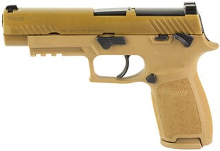 Sig Sauer P320F M17 Striker Fired Polymer Frame Full Size 9MM 4.7″ Barrel, PVD Coyote Tan Finish, SIGLITE Night Sights, Manual Thumb Safety, Optics Ready, 3 Magazines, (1)-17 Round and (2)-21 Round