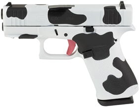 GLOCK 43X Striker Fired Sub-Compact 9MM 3.41″ Barrel, Skydas Cerakote Finish, Custom Cow Print Cerakote Finish by Skydas, Fixed Sights, 10 Rounds, 2 Magazines
