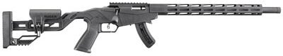 Ruger Precision Rimfire Bolt Action 22 LR 18″ Threaded Barrel, Black Finish, Molded One-piece Chassis, Adjustable Buttstock, 15 Round Magazine, Oversized Bolt Handle, Cold Hammer-Forged Barrel, Ruger Marksman Adjustable(TM) Trigger, Big-Gun Bolt Throw Adjustment