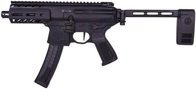 Sig Sauer MPX K 9MM 4.5″ Barrel, Black Anodized Finish, Sig PCB (Pivoting Contour Brace), Aluminum MLOK Handguard, Timney Single Stage Trigger, 35 Rounds