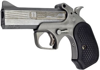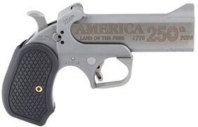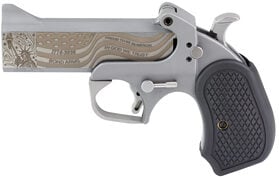 Bond Arms 250th Redneck Version Derringer .45-70 Gov’t 4.25″ 250th Anniversary Engraved Flat Barrel, Stainless Steel, Silver, Black B6 Resin Grips, 2 Rounds, Trigger Guard