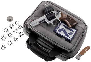 Smith & Wesson 686 Plus Spec Series R Double Action/Single Action No Internal Lock 357 Magnum/38 Special +P 4.13″ Ported Barrel, Titanium Cerakote Finish, Black PVD Finish Cylinder, Aimpoint ACRO P-2 Optic, Checkered Wood Grips, Extended Cylinder Release, Adjustable Sights, 7 Rounds, Includes Savior Pistol Case, Spec Series R Knife, Spec Series R Coin, Spec Series Patch and (10) Moon Clips