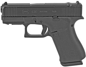 GLOCK 43X M.O.S. Sub-Compact 9MM 3.41″ Barrel, Glock Marksman Barrel, Black nDLC Finish, No Finger Grooves, Fixed Sights, Modular Optic System, 10 Rounds, 2 Magazines