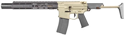 Q Honey Badger SBR 300 Blackout 7″ Threaded Barrel, Flat Dark Earth Finish, 2-position PDW Stock, 30 Rounds, Free floating MLOK handguard, Honey Badger Suppressor Included, 8.4″ Suppressor Length, 1.5″ Suppressor Diameter, Suppressor Caliber 7.62, 70 degree safety selector, Adjustable, low-pro gas block, AR controls