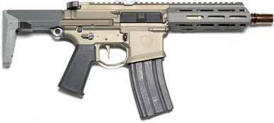 Q Honey Badger Semi-automatic Short Barreled Rifle 300 Blackout 7″ Threaded Barrel, Flat Dark Earth Finish, Collapsible Stock, Free Floating MLOK Handguard, 70 degree safety selector, 2-position PDW stock, Adjustable, low-pro gas block, 5/8-24 threads, tapered muzzle, AR controls, 30 Round Magazine