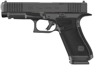 The GLOCK 17 Gen 6 is a full-size, striker-fired 9MM pistol built with a durable polymer frame and a 4.49″ barrel. Finished in DLC for added toughness, this optics-ready model features the Optics Ready System with 3 adapter plates, fixed sights, and a 17-round capacity. Enhancements include the new RTF6 grip texture, enlarged beavertail, textured and extended thumb rest, flat-faced trigger, and an undercut trigger guard for improved comfort and control. It also includes interchangeable backstraps, 3 magazines, a cleaning set, and a magazine speed loader.