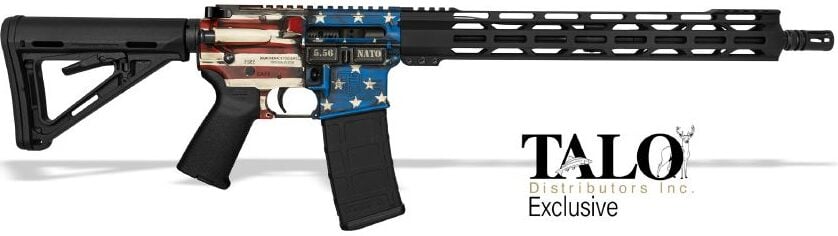 The Diamondback Firearms Carbon DB15 Rifle is a lightweight, versatile modern sporting rifle built for performance and customization. Chambered in .223 Remington/5.56 NATO, this semi-automatic rifle features a 16″ barrel with a 1-in-8 twist rate and a threaded 1/2×28 muzzle topped with an A2 flash hider. Finished in a bold American Flag Cerakote, it stands out while delivering dependable function.