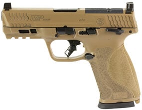 Smith & Wesson M&P M2.0 Full Size 10MM 4″ Barrel, Flat Dark Earth Cerakote Finish, Optic Height White 3 Dot Sights, Thumb Safety, 15 Rounds, Optics Ready Slide, 2 Magazines