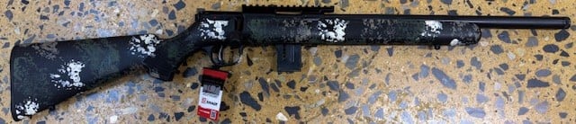 Savage Arms 93R17 FV-SR Full Size 17 HMR 16.5″ Matte Black Heavy Threaded Barrel, Matte Black Picatinny Rail Carbon Steel Receiver, Multi Sponge Camo Fixed Varmint Synthetic Stock