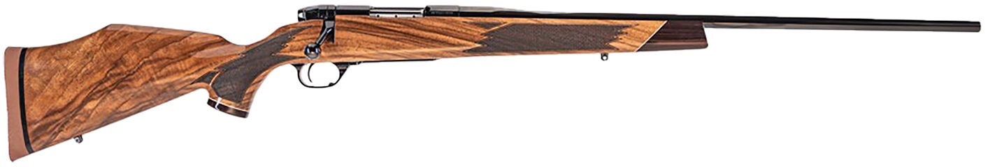 Weatherby Mark V Deluxe Varmintmaster 224 Weatherby Mag 24″ Threaded Barrel, 1/2×28 Thread Pitch, Drilled & Tapped Steel Receiver, Monte Carlo High Gloss Walnut Wood Stock