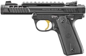 Ruger Mark IV 22/45 Lite Single Action Polymer Frame 22LR 4.4″ Threaded Barrel, Black Anodized Finish, Checkered Grips, Adjustable Rear Sight, Ambidextrous Safety, 10 Rounds, 2 Magazines