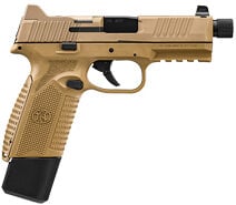 FN America FN 545 Tactical Striker Fired Full Size 45 ACP 4.71″ Barrel, Polymer Frame, Flat Dark Earth, 1 -18 Rd Magazines and 1-15Rd Magazine, Non-Manual Safety, Suppressor Height Night Sights, Low Profile Optics Mounting System, Barrel Threaded .578×28, Sight Protecting Slide Cap, Loaded Chamber Indicator, Interchangeable Backstraps, 1913 Accessory Ra il, Ambi Slide Stop Lever, Ambi Mag Release, Includes (4) MRD Mounting Plates, (2) Frame Backstraps and Premium Zippered Case