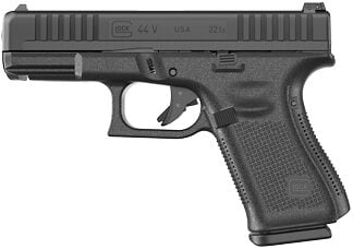 GLOCK 44V Striker Fired Polymer Frame Compact 22LR 4.02″ Barrel, Matte Black Finish, No Finger Grooves, Adjustable Sights, 10 Rounds, 2 Magazines