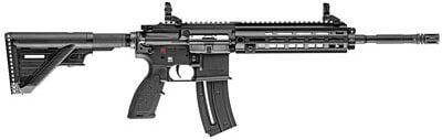 Heckler & Koch HK416 Semi-Automatic 22LR 16.1″ Threaded Barrel, 1/2X28 Threads, Black, Synthetic Stock, Right Hand, M-LOK RIS Rail, Front/Rear Flip Sights, 20 Round Magazine