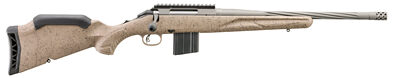 Ruger American Rifle Ranch Generation II Bolt Action 308 Winchester 16.1″ Spiral Fluted Barrel, 1:10 Twist, Threaded 5/8X24, Muzzle Brake, Cobalt Cerakote Finish, Flat Dark Earth Splatter Synthetic Stock, Manual Safety, Picatinny Rail, 3 Round Magazine