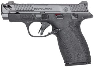 Smith & Wesson Bodyguard 2.0 Performance Center Striker Fired Micro-Compact 380 ACP 3.1″ Ported Barrel, Gray Armornite Finish Slide, Black Frame, Ameriglo Protector LumiGreen Front Night Sight, Black Square Notch Ameriglo Protector Rear Sight, Flat Face Trigger, Manual Thumb Safety, 2 Magazines, (1)-12 Round and (1)-10 Round