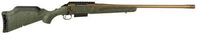 Ruger American Generation II Predator Bolt Action 450 Bushmaster 22″ Threaded Barrel, 1:16 Twist, Threaded 11/16″-24, Muzzle Brake, Burnt Bronze Cerakote Finish, Green Splatter Synthetic Stock, Manual Safety, Picatinny Rail, 3 Round Magazine, Splatter finished stock provides excellent grip without being too sharp or abrasive, Soft rubber recoil pad features a large radius on the heel for easy shouldering and improved to reduce felt recoil, Installed low comb improves sight alignment when using magnified optics but can be removed when utilizing low-mounted sights, Professionally applied Cerakote coating on barrel, muzzle brake, receiver and bolt handle results in a durable, easy-to-maintain finish, Threaded barrel with factory-installed radial port muzzle brake is cold hammer-forged