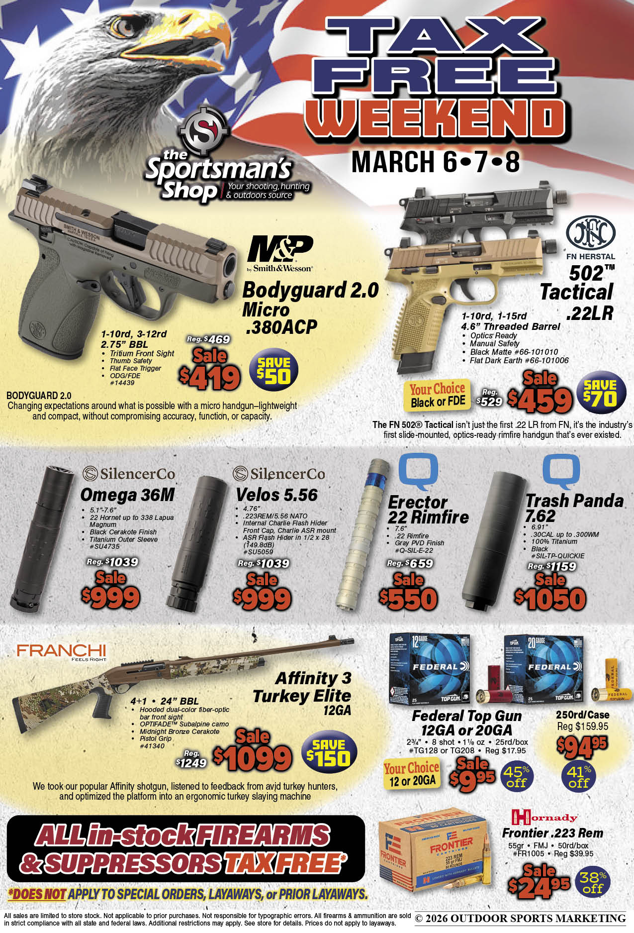 Sales prices valid March 6-8! Offers valid on in-stock items only. Sales prices valid in-store only. Sales prices not valid on special orders or layaways. No rainchecks. No holds.