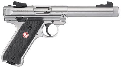 Ruger Mark IV Target Metal Frame Full Size 22LR 5.5″ Barrel, Threaded Barrel, Stainless Steel, Satin Stainless Finish, Checkered Grips, Adjustable Rear Sight, 10 Rounds