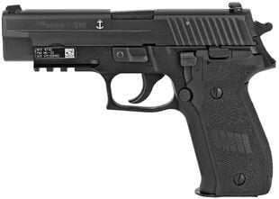 Sig Sauer P226 MK-25, Double Action/Single Action Metal Frame Full Size 9MM 4.4″ Barrel, Alloy, Nitron Black Finish, Polymer Grips, SIGLITE Night Sights, Decocker, 15 Rounds, Phosphate components, Engraved w/USN Anchor, 3 Magazines