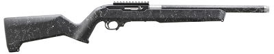 Check out the new lightweight 10/22 rifle! This rifle is feature rich with a custom look and feel and has earned the distinction of being the lightest 10/22 in the Ruger line. Weighing in at a mere 3.5 lbs., this rifle sports a 16.1″ cold hammer-forged tensioned barrel with a carbon fiber sleeve. In addition to the reduction in weight, the stainless steel tensioned barrel is more rigid, reducing vibration, and is threaded 1/2″X28 for the addition of muzzle devices.