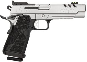 Springfield Operator AOS 1911 Metal Frame Full Size 45 ACP 5″ Match Grade Barrel, Carbon Steel Frame, Carbon Steel Slide, Cerakote Finish, Black, Optic Ready, VZ G10 Grips, Front White Dot Sight, Tactical Rack White Dot Rear Sight, Ambidextrous Thumb Safety, Viridian Green Dot, 8 Rounds, 4 Magazines, Includes Pistol Case
