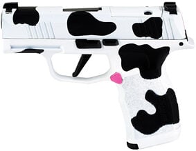 Sig Sauer P365X Striker Fired Sub-Compact Polymer Frame Subcompact 9MM 3.1″ Barrel, Cerakote Finish, Custom Cow Print Cerakote Finish by SKYDAS, Fixed Sights, Optic Ready, 12 Rounds, 2 Magazines