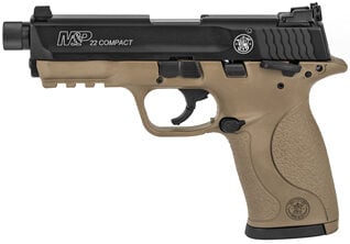 Smith & Wesson M&P Compact Compact 22LR 3.5″ Threaded Barrel, Flat Dark Earth Cerakote Finish, 3-Dot Sight, Manual Thumb Safety, 10 Rounds, 2 Magazines