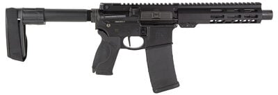 Smith & Wesson M&P 15 Pistol Semi-automatic 223/5.56 7.5″ Threaded Barrel, Black Finish, Fixed-Position Pistol Stabilizing Brace, Blast Diverter, M-LOK Handguard, Full-Length Picatinny Rail, 4 Interchangeable Palmswell Grip Inserts, Forged, Integral Trigger Guard, One-Point QD Sling Swivel Attachment Point in Arm Brace, 30 Round Magazine