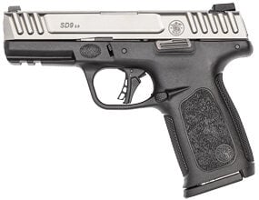 Smith & Wesson SD9 2.0 Striker Fired Full Size 9MM 4″ Barrel, Satin Finish, Silver Slide, Black Frame, White Dot Sights, Flat Face Trigger, 16 Round Magazine
